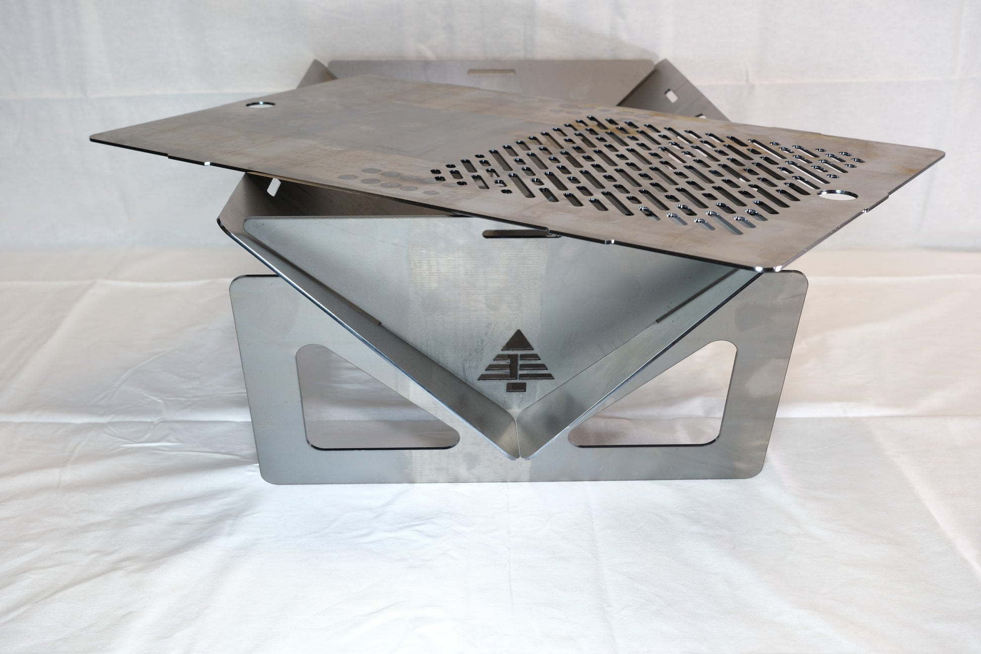 Includes: Foldable fire pit + deluxe grill/griddle plate